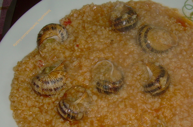 Όπως έχω ξαναγράψει οι συνταγές με χοχλιούς θα μπορούσαν να γεμίσουν ένα ολόκληρο βιβλίο. Ένας από τους πιο συχνούς και νόστιμους τρόπους είναι με στάρι σπασμένο ( αυτό που λέμε χόντρο ) ή ρύζι.