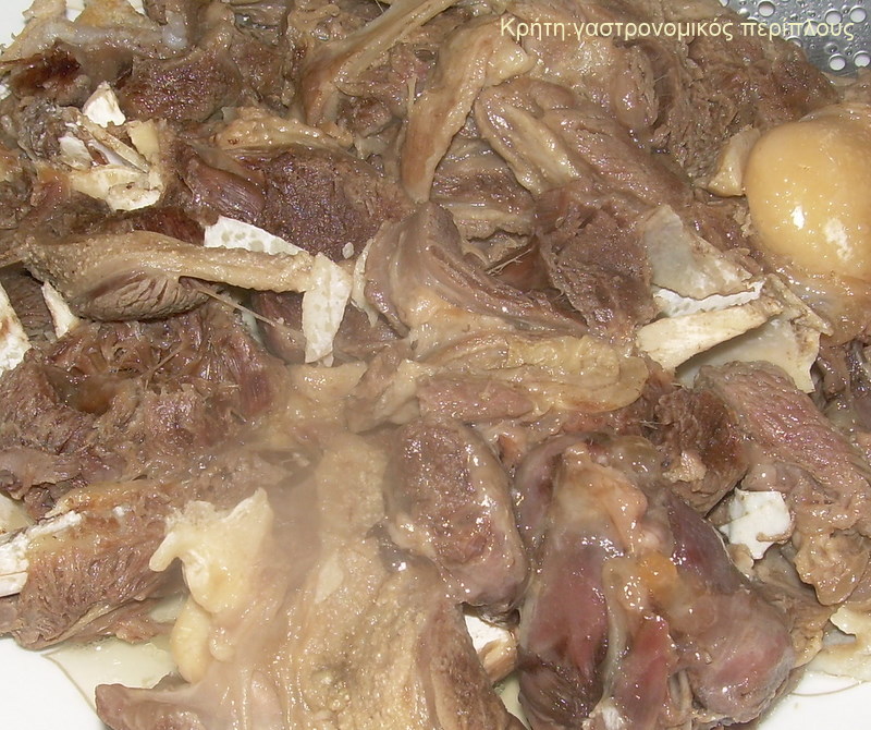 Όπως έχω ξαναπεί, στην Κρήτη βράζουμε πολύ συχνά το κρέας. Και για να είναι ο ζωμός καλός χρειάζεται το κομμάτι που θα βράσουμε να έχει και κοκαλάκια. Ακόμη λοιπόν κι αν βράσουμε ψαχνό μοσχάρι ή βοδινό ζητάμε από τον χασάπη να μας βάλει και κανένα κόκαλο αν θέλουμε να βγάλουμε καλό ζωμό. Το πιο νόστιμο ζουμί κατά τη γνώμη μου το παίρνουμε από το ζυγούρι. Είναι γνωστή η αγάπη των κρητικών για τα «ωζίστικα» κρέατα, δηλαδή για τα κρέατα των αιγοπροβάτων. Το ζυγούρι είναι το χρονιάρικο αρνί και αυτή την εποχή βρίσκουμε πάντα στα κρεοπωλεία μας. Αυτό δεν σημαίνει ότι είναι άσχημη με μοσχάρι, βοδινό , αίγα , χωριάτικο κοτόπουλο.