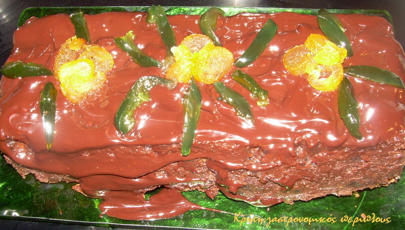 Όταν στερεοποιηθεί, βουτάω τη φόρμα σε καυτό νερό για ένα λεπτό και την αναποδογυρίζω σε πιατέλα. Λιώνω ακόμη λίγη σοκολάτα και γαρνίρω με ότι έχω: Τρούφα, αμύγδαλο φιλέ, γλυκά κουταλιού κλπ…