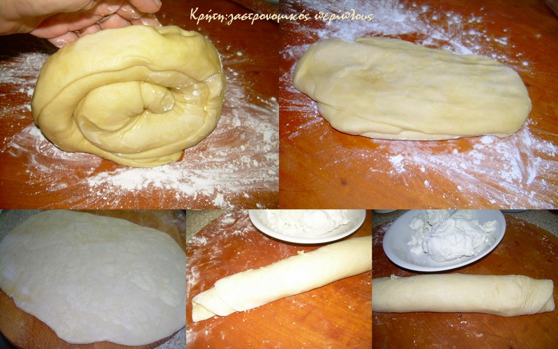 Ζυμώνουμε το ζυμάρι όπως συνήθως (τα υγρά σε μια λεκάνη, το αλάτι και προσθέτουμε σταδιακά το αλεύρι ώστε να γίνει μια μαλακή εύπλαστη ζύμη) και αφήνουμε να ξεκουραστεί για κανένα μισάωρο. Το χωρίζουμε σε τρία ίσα μέρη.