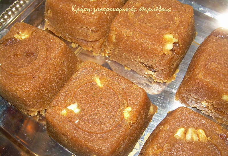 […] Στην Κρήτη τον εμπλουτίζουμε με τι άλλο; Με σταφίδες και αμύγδαλα που τουλάχιστον στο παρελθόν υπήρχαν σε κάθε σπίτι, και μερικές φορές με γλυκό του κουταλιού. Τις περισσότερες φορές τον γλύκαιναν με μέλι ή πετιμέζι. Η γιαγιά μου έφτιαχνε ένα θαυμάσιο κουταλάτο χαλβά με αλεύρι και πετιμέζι. […]