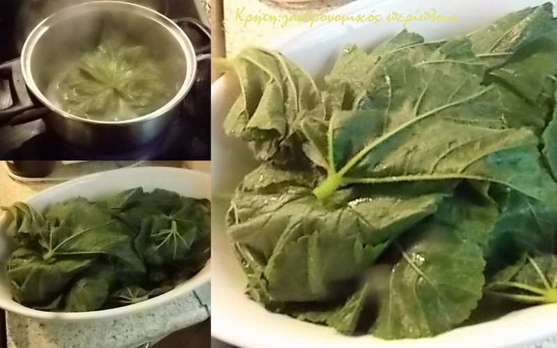 μεγάλα και γερά αλλά τρυφερά φύλλα μολόχας, τα ζεματάμε ελαφρά και τυλίγουμε ντολμαδάκια.