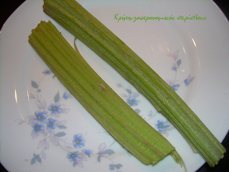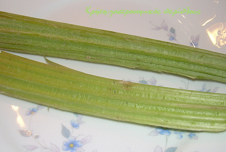 Με ένα κοφτερό μαχαιράκι βγάζουμε προσεκτικά τη μεμβράνη που καλύπτει το στέλεχος (και από την αυλακωτή πλευρά)